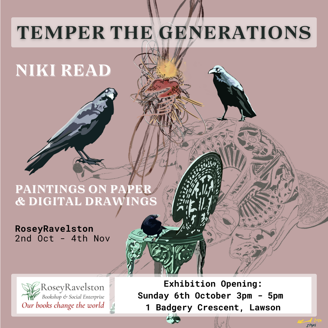Solo Exhibition, Temper the generations, paintings on paper and digital drawings, digital drawing workshops. RoseyRavelston, 2024